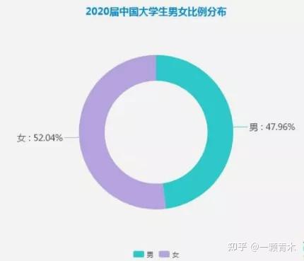 但是在2020届高校学生中,录取的男女比却出现了惊人的反差,全国范围内女生占比达52%,男生占比48%,男女比完完全全的反了过来。